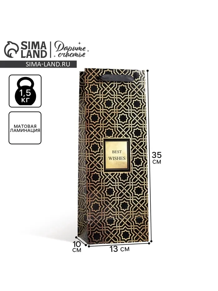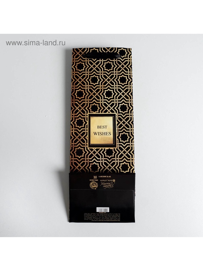 Пакет подарочный ламинированный под бутылку, упаковка, Best wishes, 13 x 35 x 10 см — Характеристики