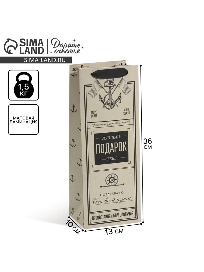 Пакет подарочный ламинированный под бутылку, упаковка, «Подарок», 13 x 35 x 10 см — Характеристики