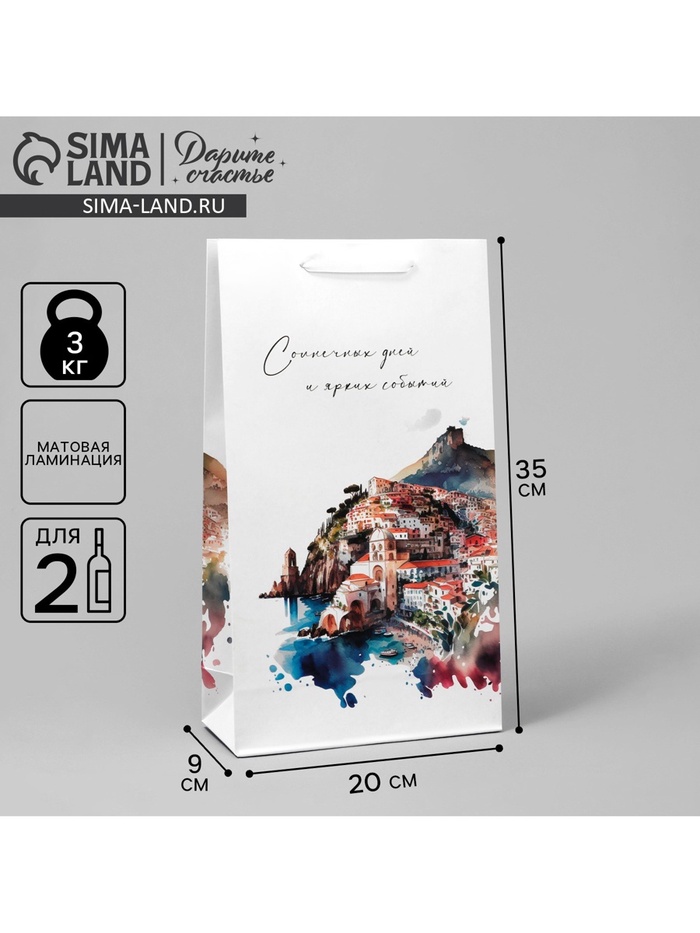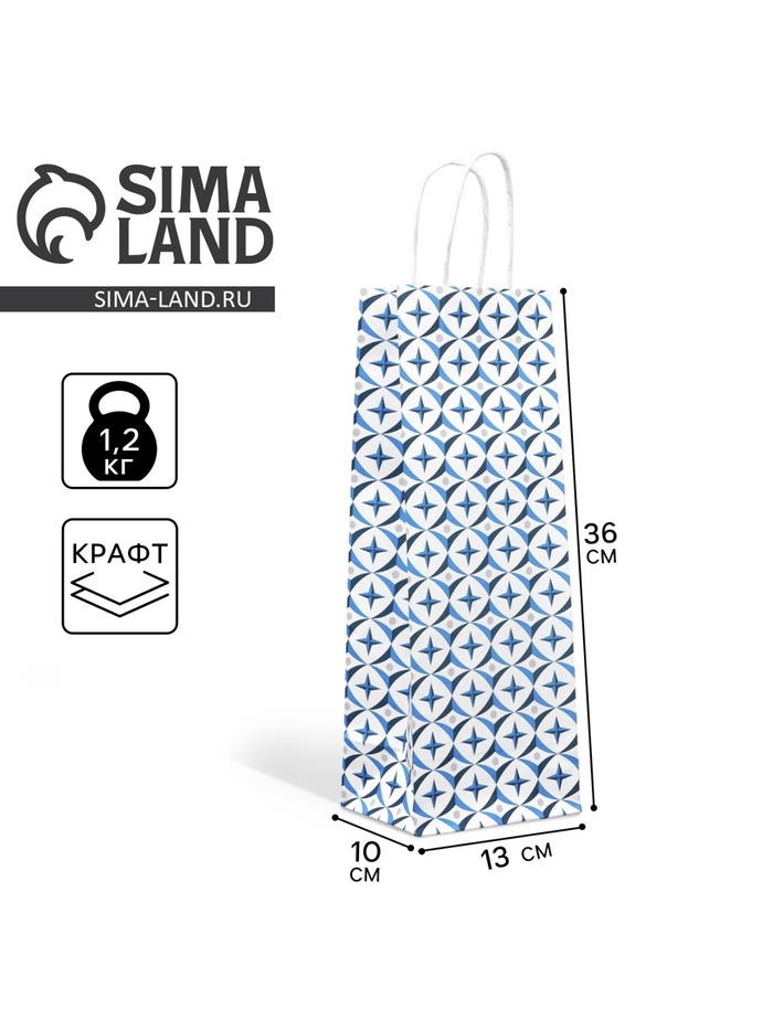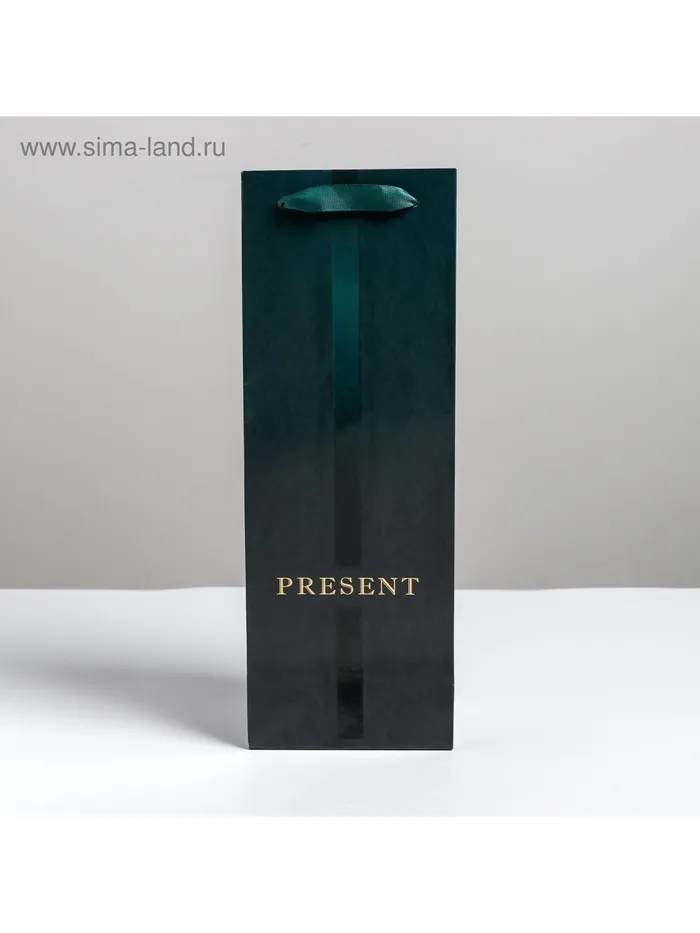 Пакет подарочный ламинированный под бутылку, упаковка, «Present», 13 x 36 x 10 см — Характеристики