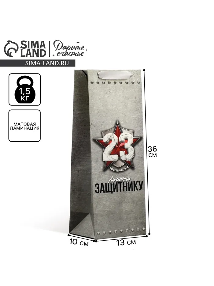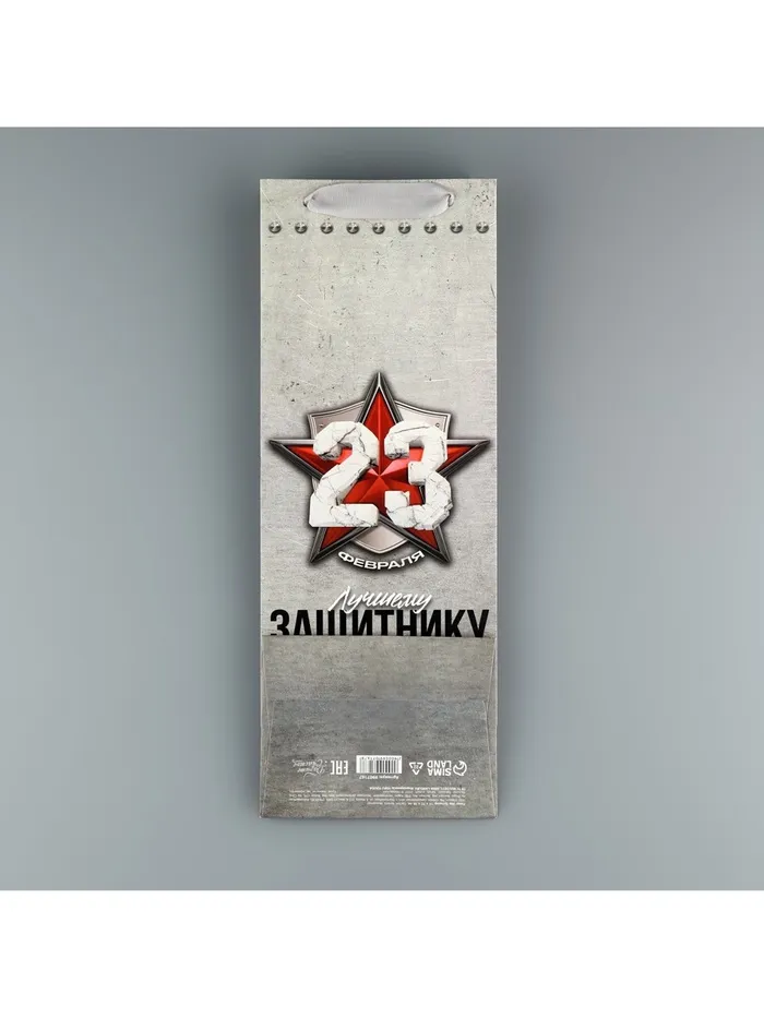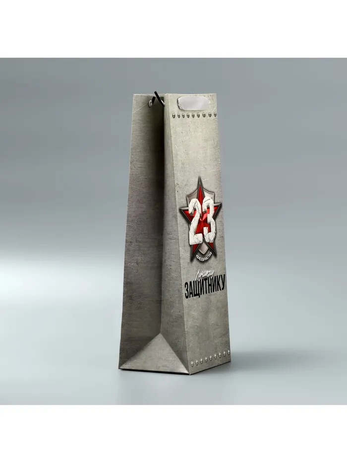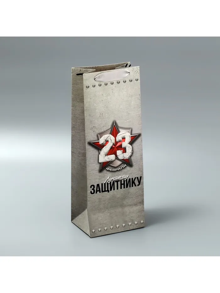 Пакет подарочный ламинированный под бутылку, упаковка, «С 23 февраля», 13 x 35 x 10 см — Характеристики