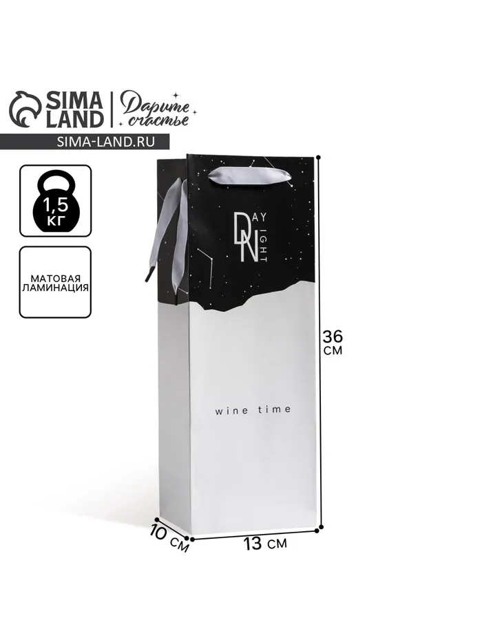 Пакет подарочный ламинированный под бутылку, упаковка, «Wine time», 13 x 36 x 10 см — Характеристики