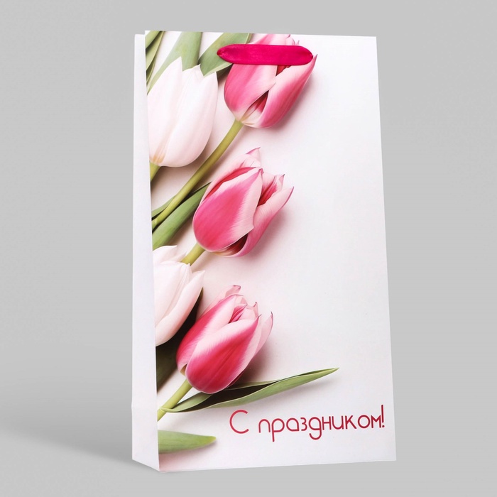 Пакет подарочный ламинированный под две бутылки «С праздником!», 35×20×9 см — Характеристики