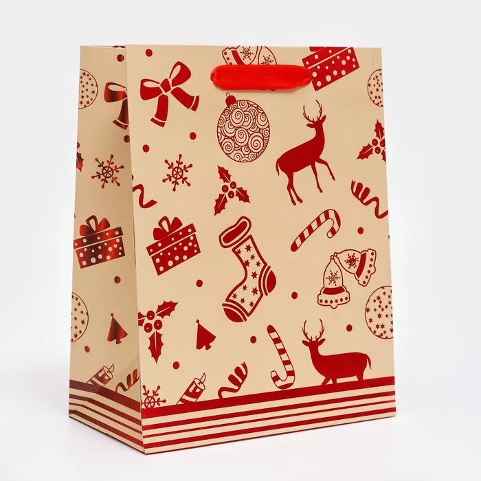 Такой подарочный пакет станет неотъемлемой частью вашего подарка, дополняя его и делая его еще более особенным. Это не просто упаковка — это возможность создать целую новогоднюю историю, где каждый элемент, включая этот элегантный пакет, играет важную роль в создании праздничного настроения.