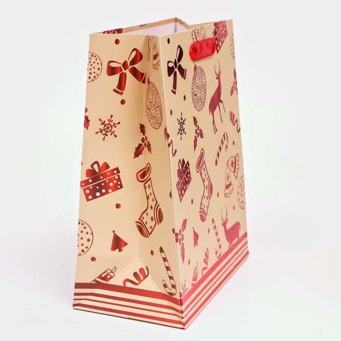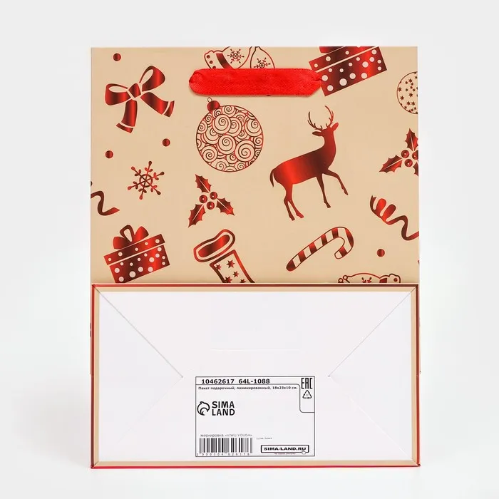 Подарочный пакет, ламинированный и новогодний, размером 18 х 23 х 10 см — это идеальный выбор для упаковки ваших праздничных сюрпризов. Этот пакет сочетает в себе практичность и элегантный дизайн, который украсит любой подарок и создаст особую атмосферу волшебства и радости.