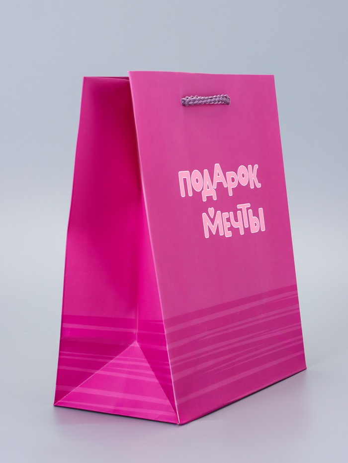 Подарочный пакет «Подарок» — это ламинированная упаковка среднего размера в нежно-розовом цвете с тематическим рисунком и лаконичной надписью. Он передает теплое отношение без лишних слов, делая презент выразительным и понятным.