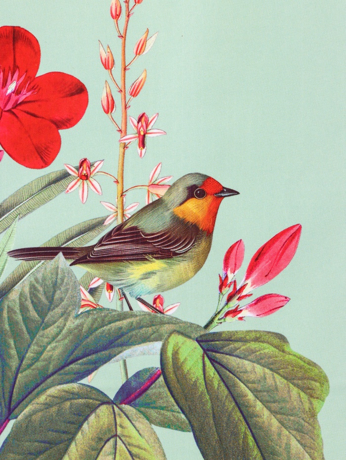 - Природный дизайн с птичкой: Изящное изображение птицы среди растительных элементов создает образ свободы и легкости. Рисунок выглядит живо и динамично.