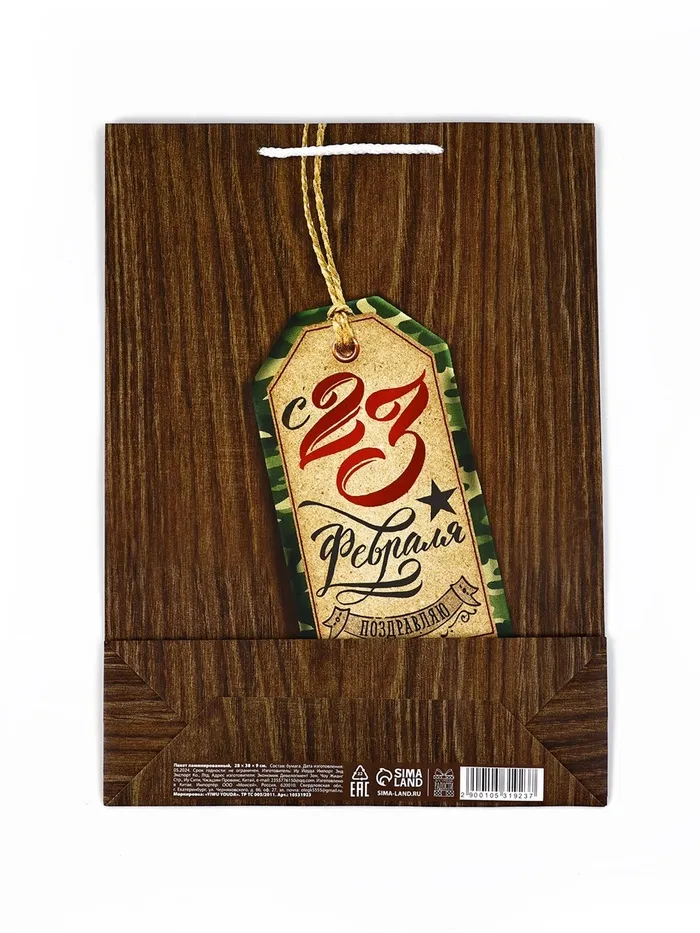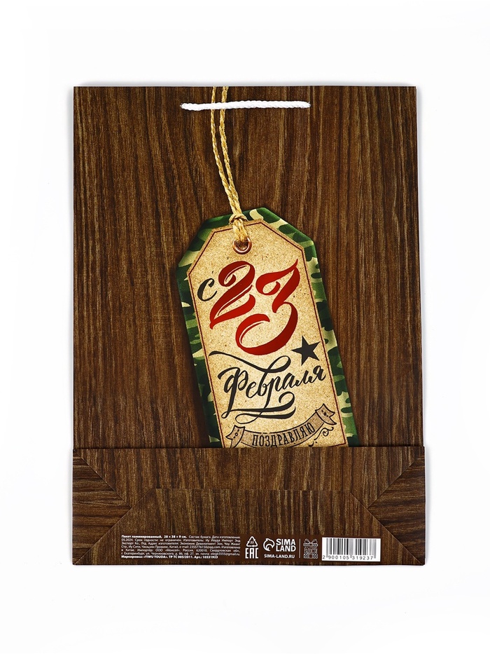 Пакет подарочный ламинированный «С 23 февраля», L 28 х 38 х 9 см — Характеристики