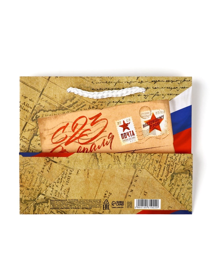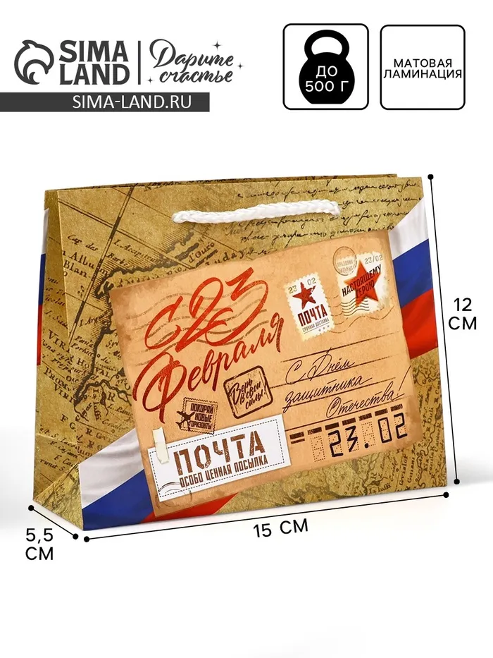 Пакет подарочный ламинированный «С 23 февраля», S 12 х 15 х 5.5 см — Характеристики