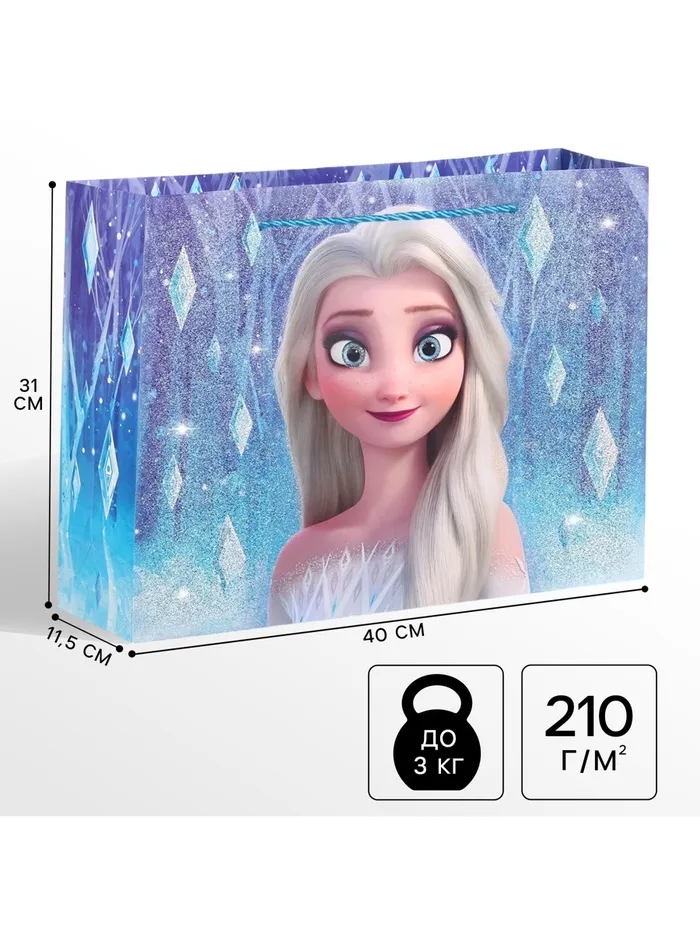 Пакет подарочный ламинированный с блестками, Холодное сердце, 40х31х11,5 см — Характеристики