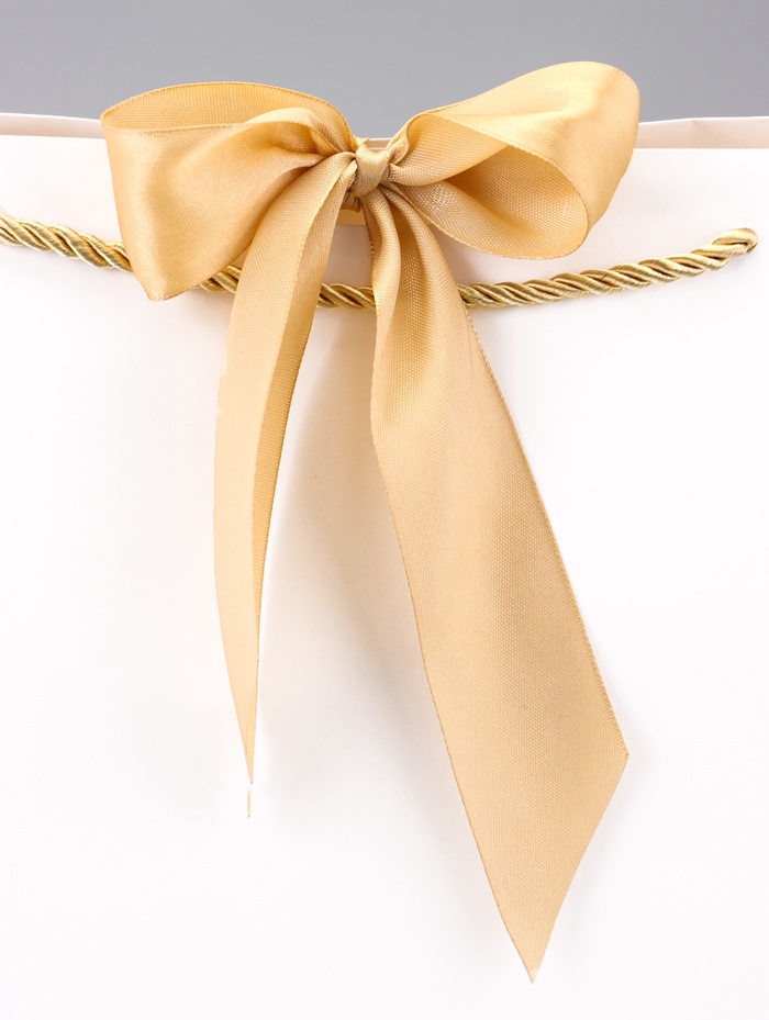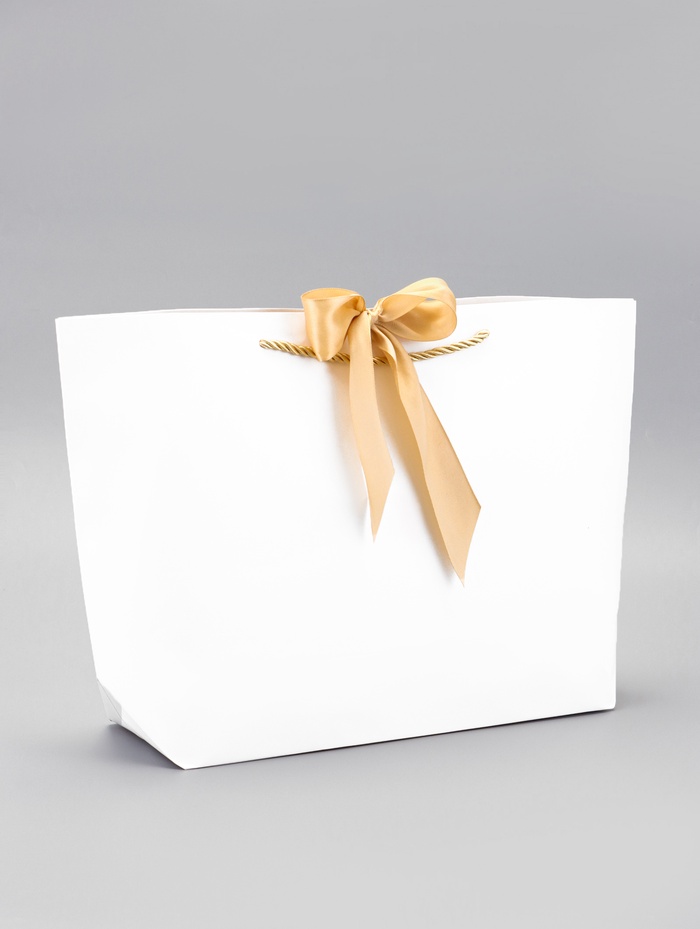Пакет подарочный ламинированный, с лентой «Белый», горизонтальный, 30×27.5×12 см — Характеристики