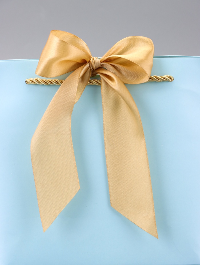 Пакет подарочный ламинированный, с лентой «Голубой», горизонтальный, 19×20×9 см — Характеристики