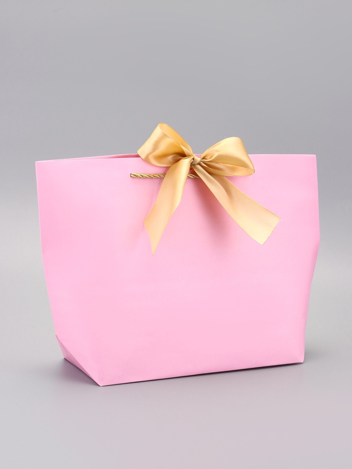 Пакет подарочный ламинированный с лентой «Розовый», горизонтальный, 19×20×9 см — Характеристики