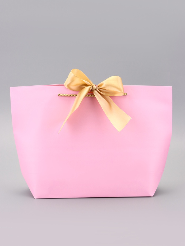 Пакет подарочный ламинированный, с лентой «Розовый», горизонтальный, 26×25×11 см — Характеристики