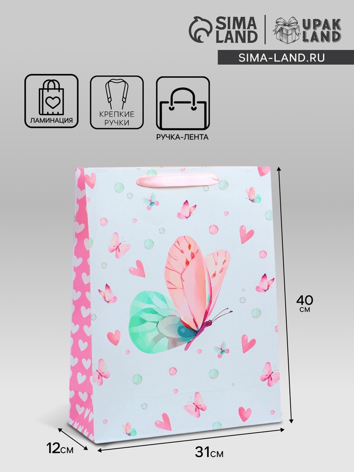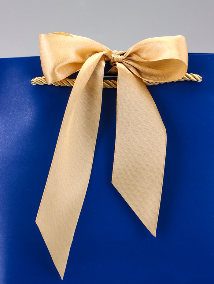 Пакет подарочный ламинированный, с лентой «Синий», горизонтальный 19×20×9 см — Характеристики