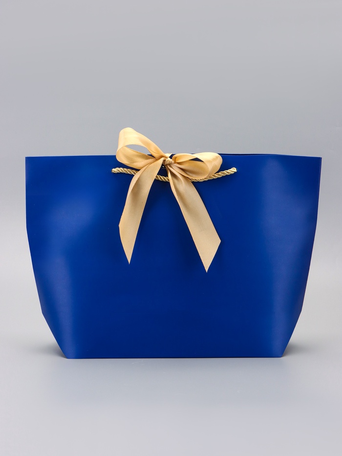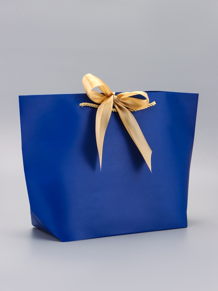 Вместительная упаковка для солидных подарков! Синий подарочный пакет увеличенного размера — это практичное решение для презентации крупных предметов и объемных наборов. Сочетание большого формата и сдержанного цвета создает образ основательного подарка.