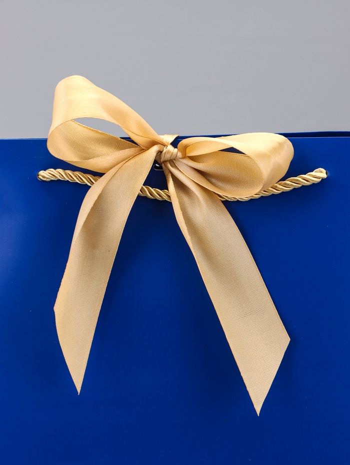 Пакет подарочный ламинированный, с лентой «Синий», горизонтальный, 26×25×11 см — Характеристики