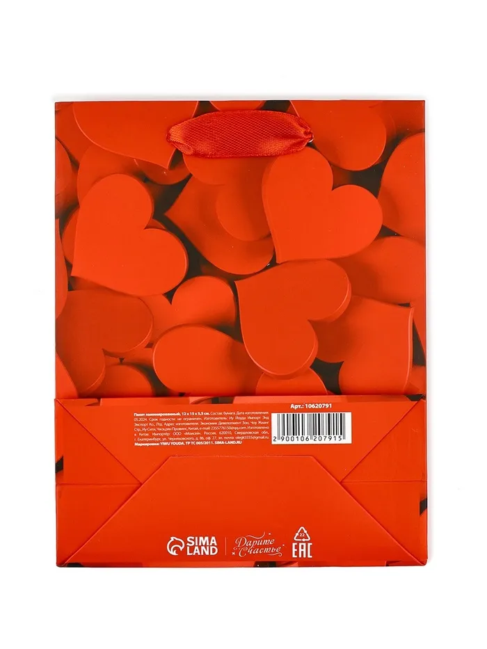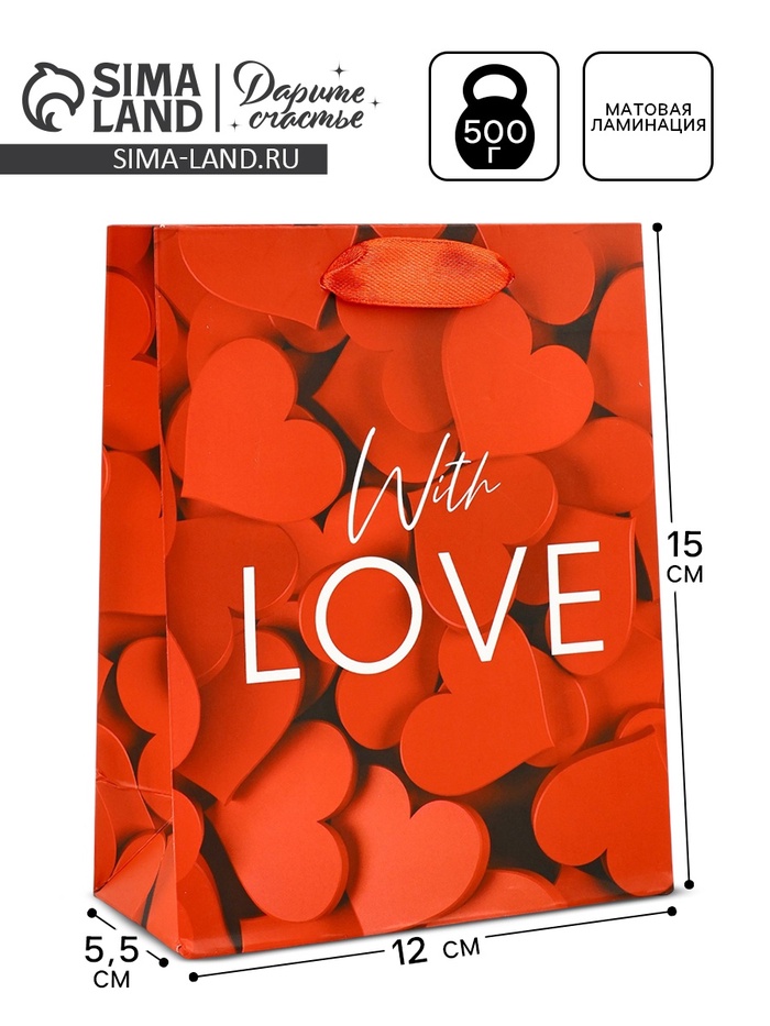 Пакет подарочный ламинированный «С любовью», S 12 х 15 х 5.5 см — Характеристики