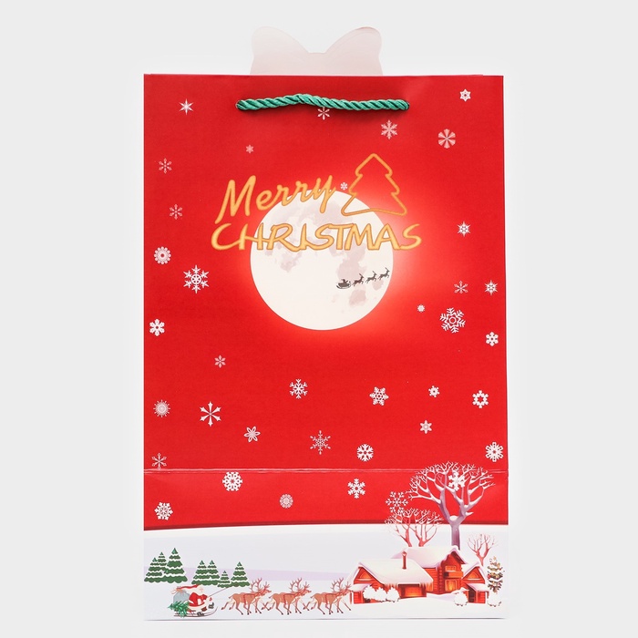- Удобство и законченный вид: Прочные ручки-шнуры удобно лежат в руке, а прозрачное окно даёт возможность мельком увидеть сюрприз. Красный цвет в таком исполнении выглядит классически-празднично и солидно.