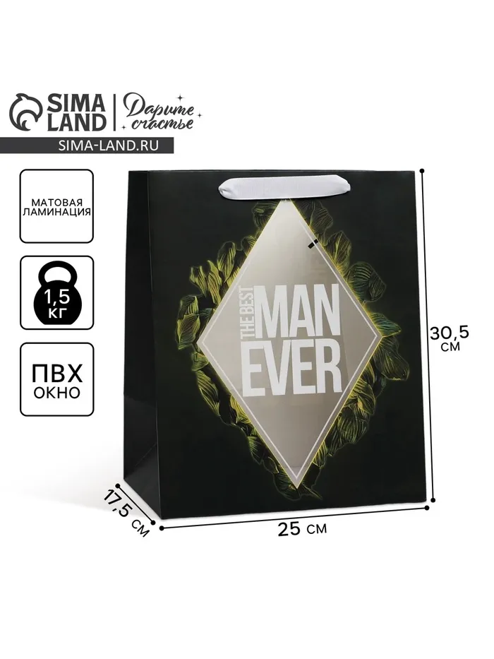 Пакет подарочный ламинированный с пластиковым окном, упаковка, «Лучшему», 30.5 х 25 х 17.5 см — Характеристики