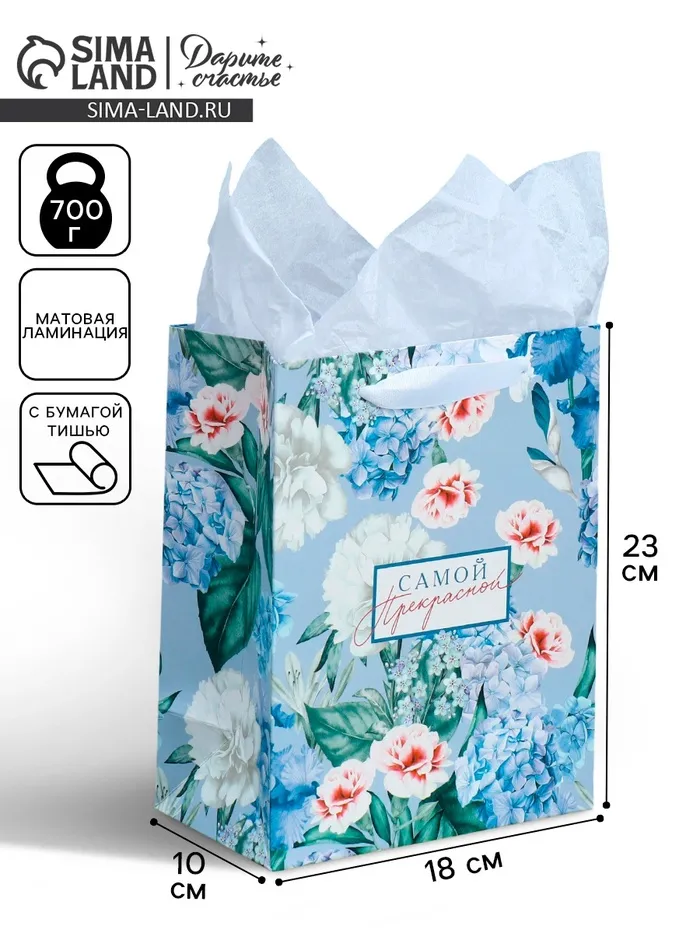 Пакет подарочный ламинированный с тишью, упаковка, «Самой», MS 18 х 23 х 10 см — Характеристики