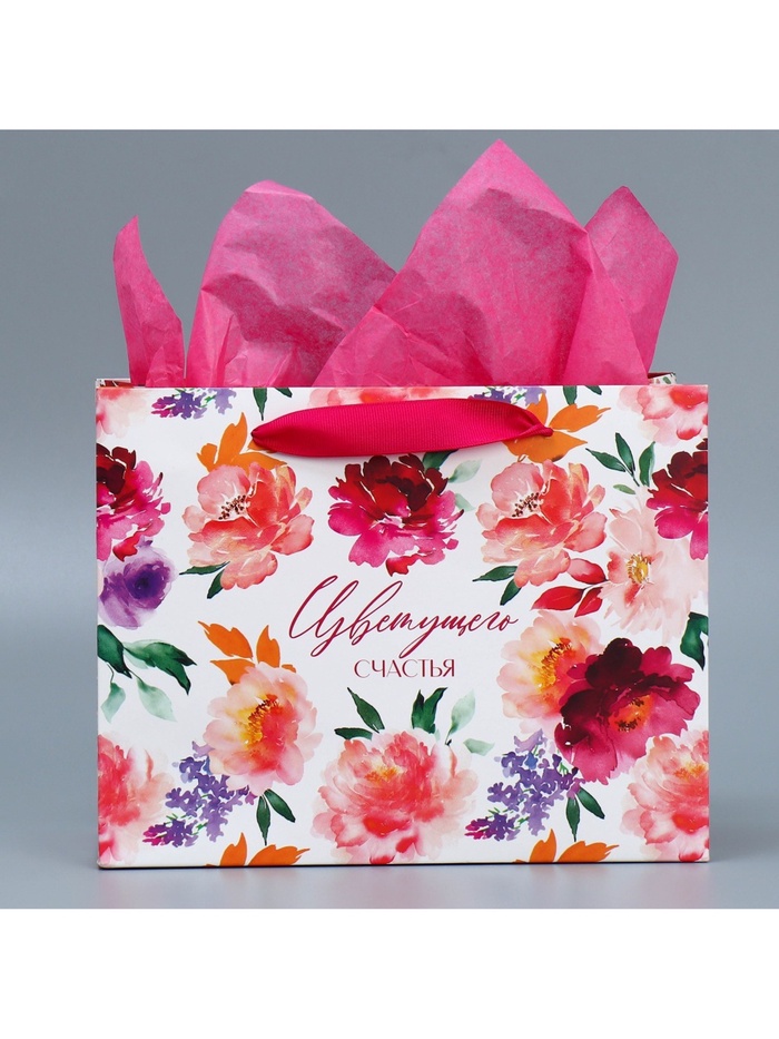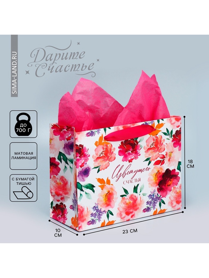 Пакет подарочный ламинированный с тишью, упаковка, «Счастье», MS 23 х 18 х 10 см — Характеристики