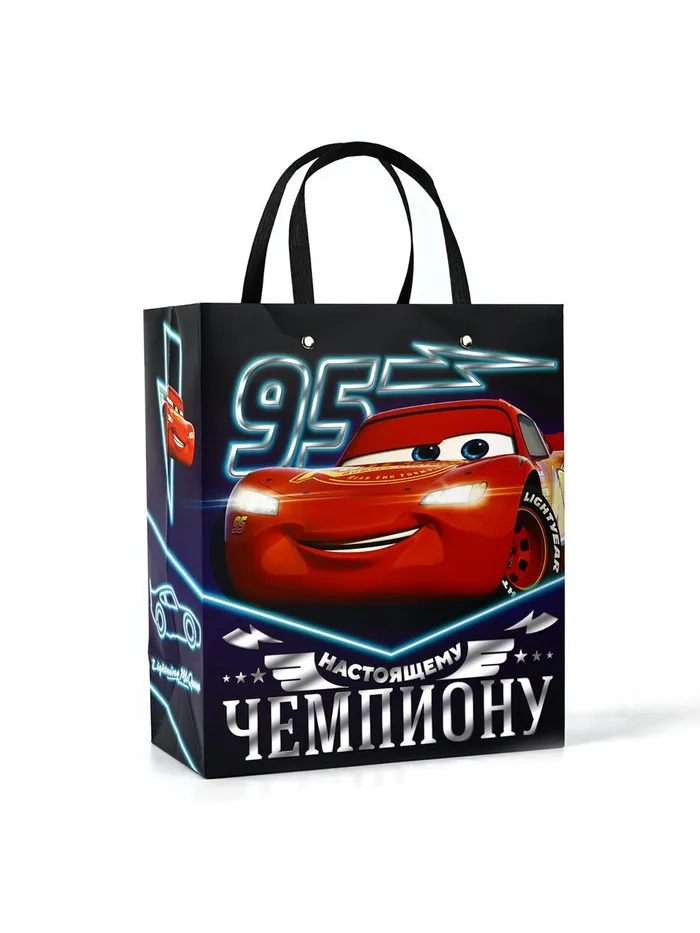 Пакет подарочный ламинированный с тиснением «Чемпиону», Тачки, 23х27х11,5 см — Характеристики