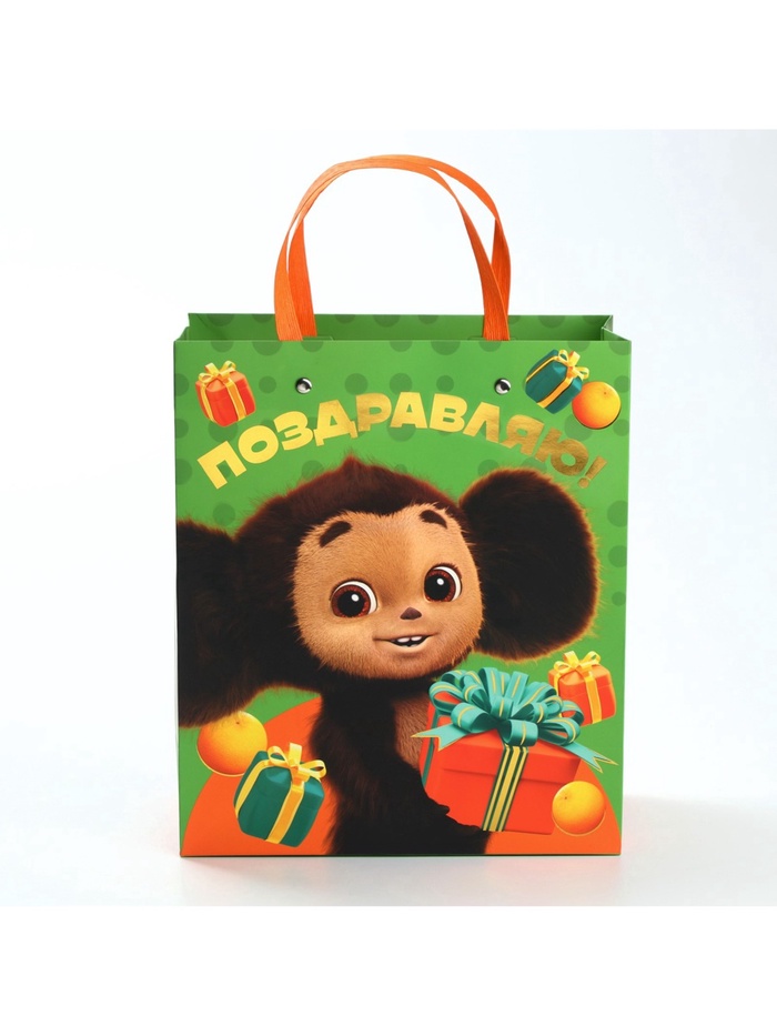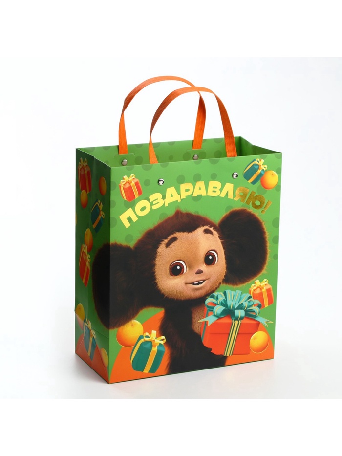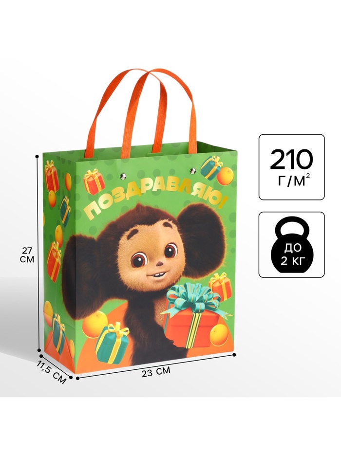 Пакет подарочный ламинированный с тиснением «Поздравляю!», Чебурашка, 23х27х11,5 см — Характеристики