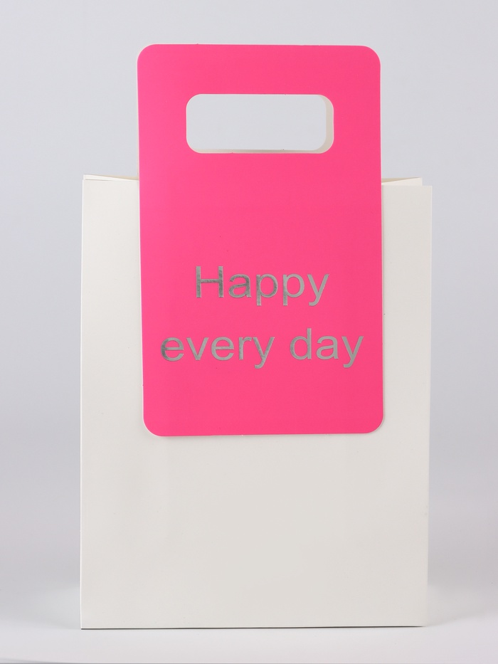 Особенность этого пакета – это уникальная вырубная ручка с тиснением, на которой нанесена изысканная надпись. Тиснение придает ручке утонченный текстурный эффект, который подчеркивает эксклюзивность упаковки и делает ее отличным выбором для особых случаев.