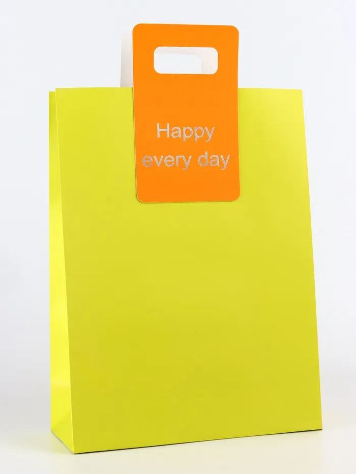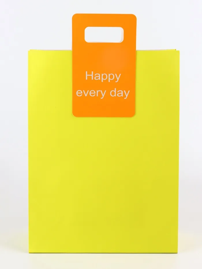 - Надпись "Happy every day" на пакете напоминает о важности ежедневного счастья и позитивного настроя, добавляя эмоциональной ценности вашему подарку. Вырубная ручка обеспечивает удобство при переноске, а также придает пакету стильный и современный вид.
