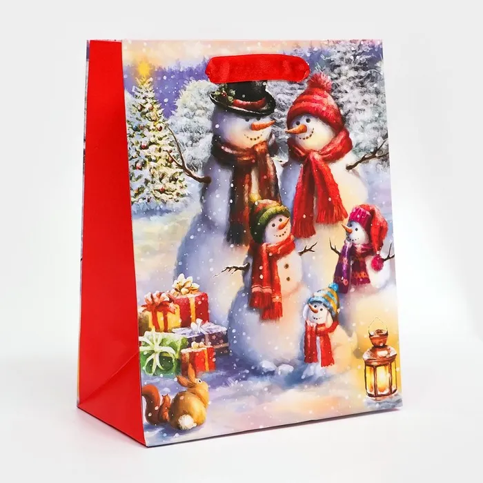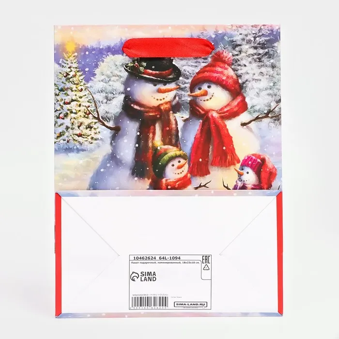 Пакет подарочный, ламинированный, «Снеговики»,18×23×10 см — Характеристики