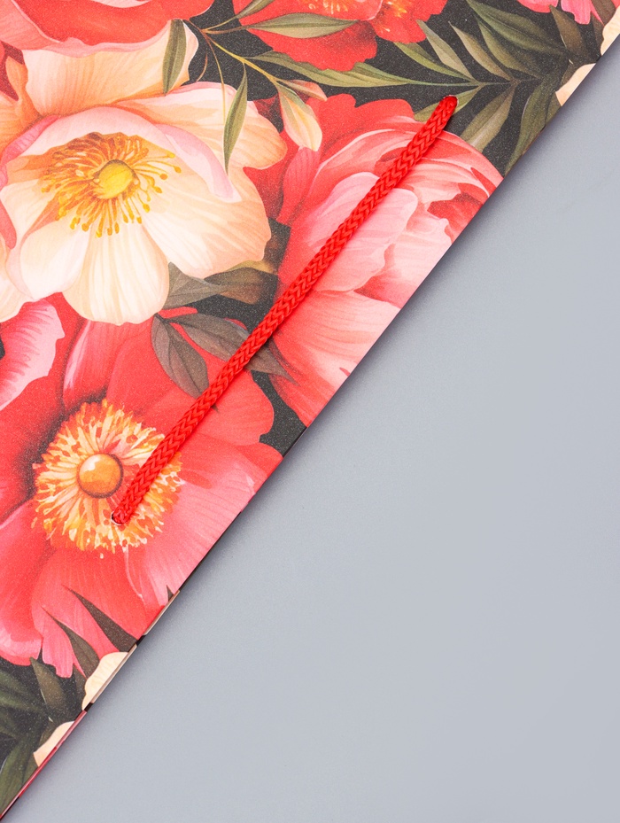 - Удобные ручки-шнуры для переноски: Шнуровые ручки комфортно лежат в руке и обеспечивают надежную переноску. Конструкция равномерно распределяет вес подарка.