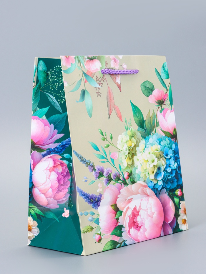 Пакет подарочный ламинированный «Цветы и Радость» 18×22.3×10 см — Характеристики