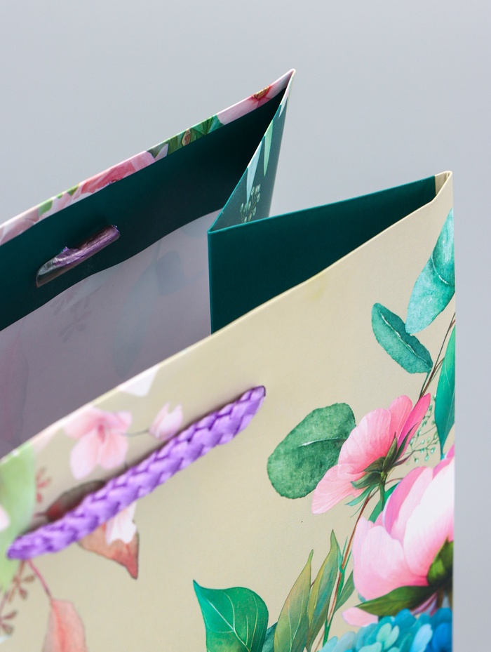 - Яркий цветочный дизайн: Зеленый фон с выразительным цветочным принтом передает ощущение энергии и позитива. Этот пакет станет удачным выбором для подарка женщине или девушке на 8 Марта, День рождения или как проявление внимания без повода.