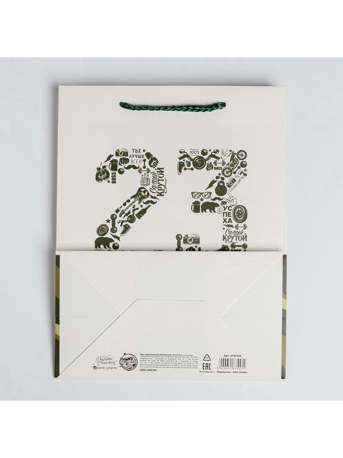 Пакет подарочный ламинированный, упаковка, «23 февраля», MS 18×23×10 см — Характеристики
