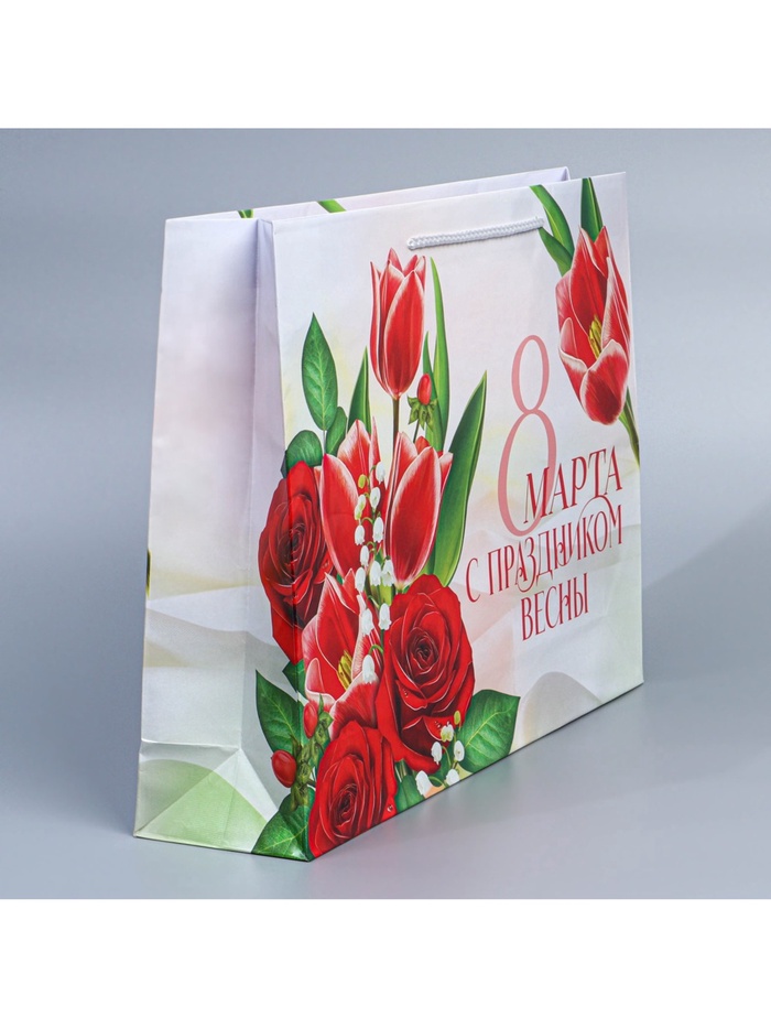 Пакет подарочный ламинированный, упаковка, «8 марта», L 28×38×9 см — Характеристики