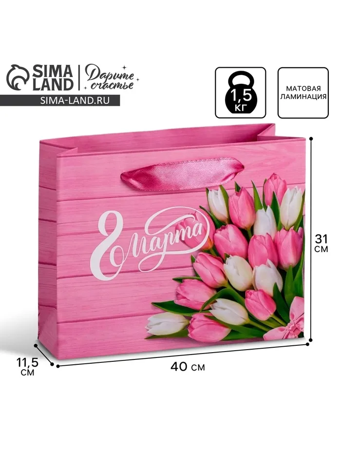 Пакет подарочный ламинированный, упаковка, «8 марта», L 40 х 31 х 11.5 см — Характеристики