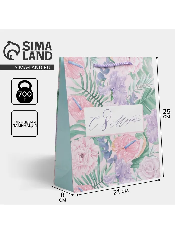 Пакет подарочный ламинированный, упаковка, «8 марта», ML 21 х 25 х 8 см — Характеристики