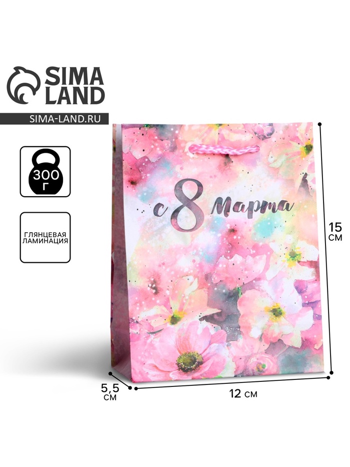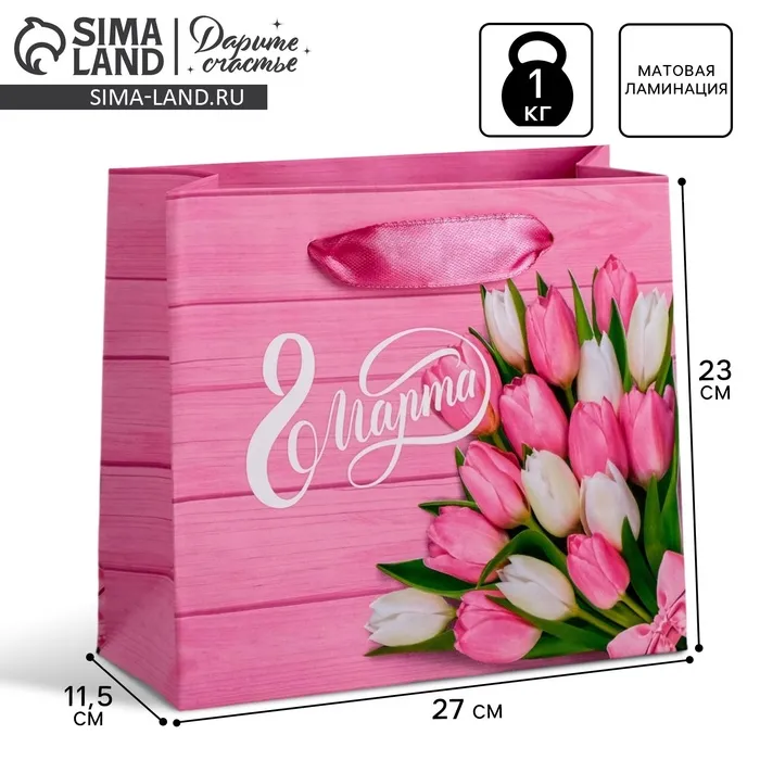 Пакет подарочный ламинированный, упаковка, «8 марта», ML 27 х 23 х 11.5 см — Характеристики