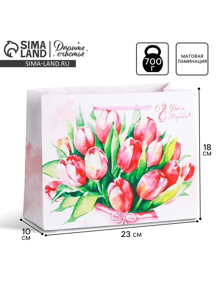 Пакет подарочный ламинированный, упаковка, «8 марта», MS 18 х 23 х 8 см — Характеристики