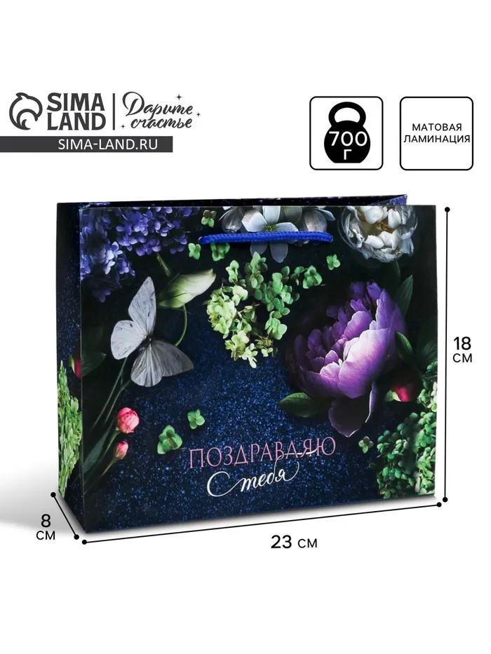 Пакет подарочный ламинированный, упаковка, «Аромат цветов», MS 23 х 18 х 8 см — Характеристики