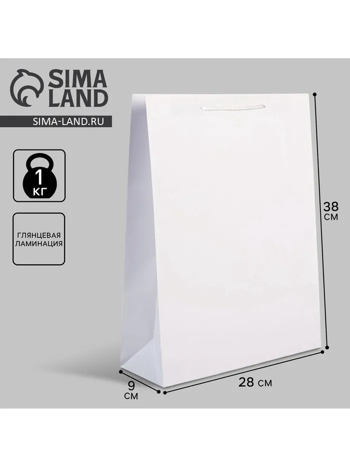 Пакет подарочный ламинированный, упаковка, «Белый», L 28 х 38 х 9 см — Характеристики