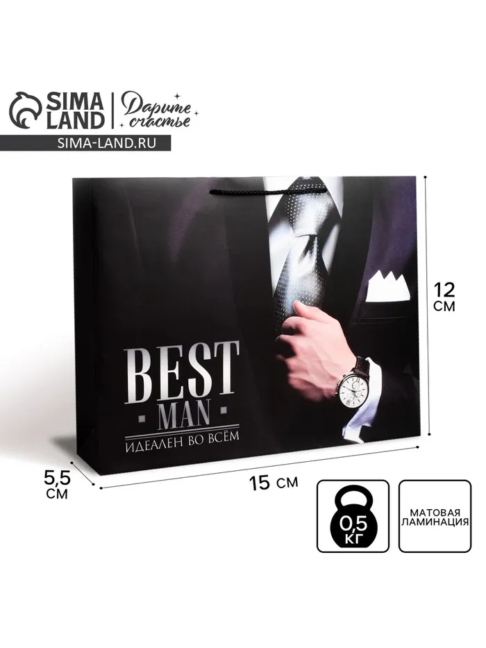 Пакет подарочный ламинированный, упаковка, «Best man», S 15 х 12 х 5.5 см — Характеристики