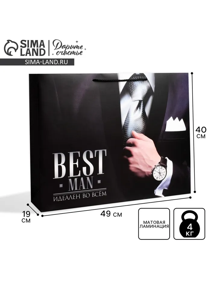 Пакет подарочный ламинированный, упаковка, «Best man», XL 49 х 40 х 19 см — Характеристики