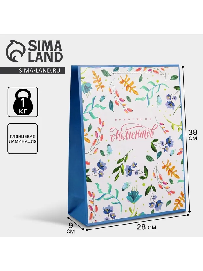 Пакет подарочный ламинированный, упаковка, Best wishes, L 28 х 38 х 9 см — Характеристики