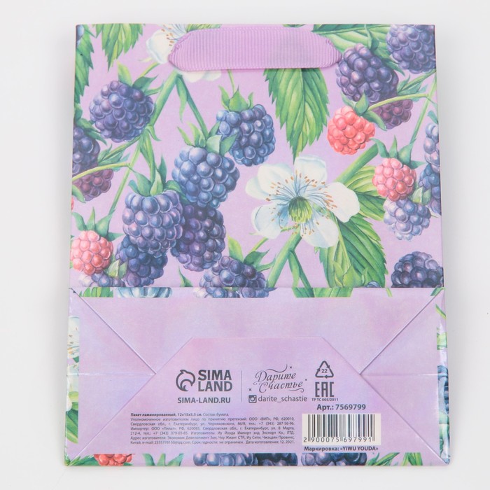 Пакет подарочный ламинированный, упаковка, «Будь собой», радужная голография, S 12 х 15 х 5.5 см — Характеристики