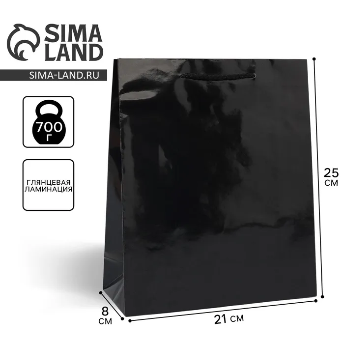 Пакет подарочный ламинированный, упаковка, «Чёрный», ML 21 х 25 х 8 см — Характеристики