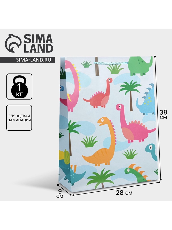 Пакет подарочный ламинированный, упаковка, «Динозавр: Поздравляю», L 28 х 38 х 9 см — Характеристики