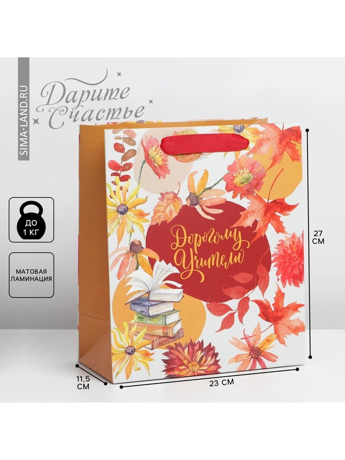 Пакет подарочный ламинированный, упаковка, «Дорогому учителю», ML 27 х 23 х 11.5 см — Характеристики