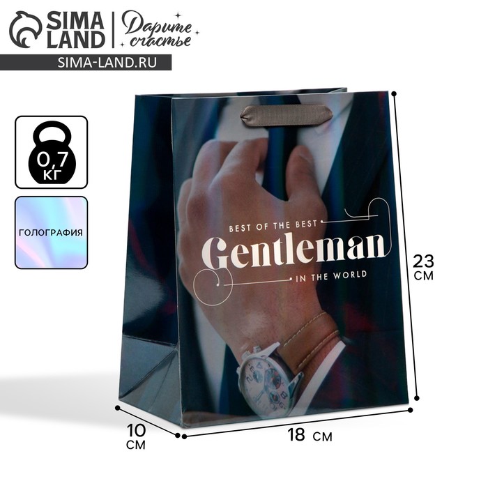 Пакет подарочный ламинированный, упаковка, «Джентельмен», радужная голография, MS 18 х 23 х 10 см — Характеристики