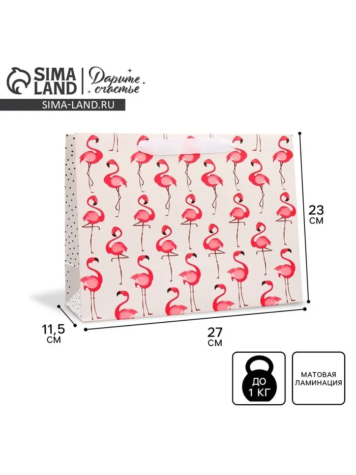 Пакет подарочный ламинированный, упаковка, «Фламинго», ML 27 х 23 х 11.5 см — Характеристики